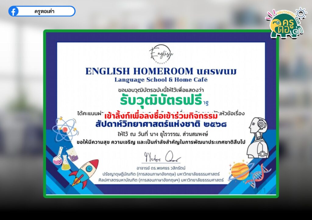 เกียรติบัตรออนไลน์ แบบทดสอบฟรีเกียรติบัตร สัปดาห์วิทยาศาสตร์แห่งชาติ Thailand’s National Science Week 2025 มหาวิทยาลัยนครพนม