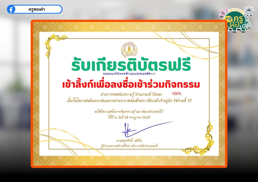 แบบทดสอบออนไลน์ วันเฉลิมพระชนมพรรษา พระบาทสมเด็จพระวชิรเกล้าเจ้าอยู่หัว รัชกาลที่ 10 สกร นาดีเกียรติบัตรฟรี ลงนามถวายพระพรออนไลน์ วันเฉลิมพระชนมพรรษา พระบาทสมเด็จพระวชิรเกล้าเจ้าอยู่หัว รัชกาลที่ 10 สกร นาดี รับเกียรติบัตร